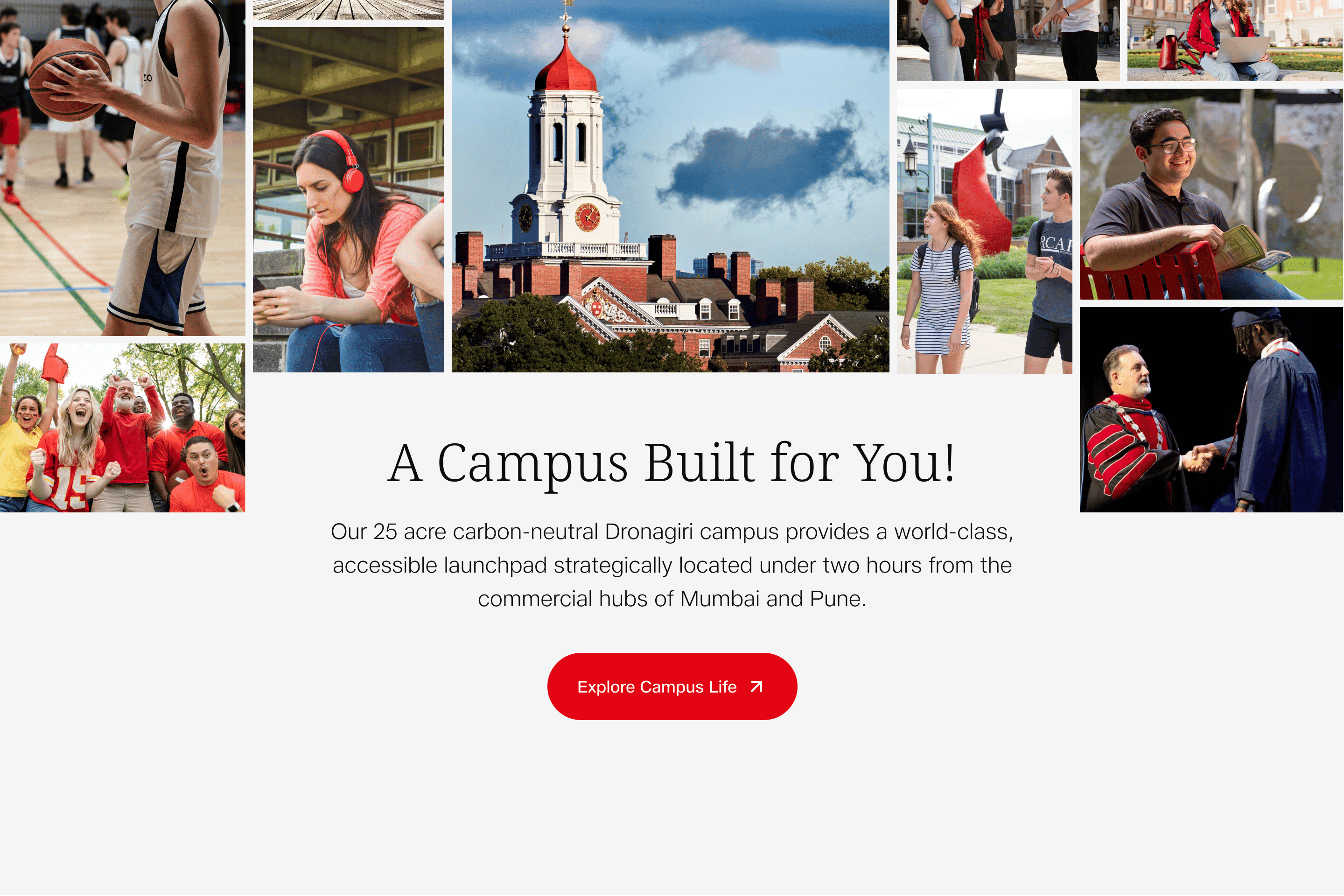 The page doesn't tell you what Harvard is. It shows you what Harvard thinks about. Now the reason why we did not want to this was because, Harvard can put up memes on its homepage & still get students in, Jio University cannot.