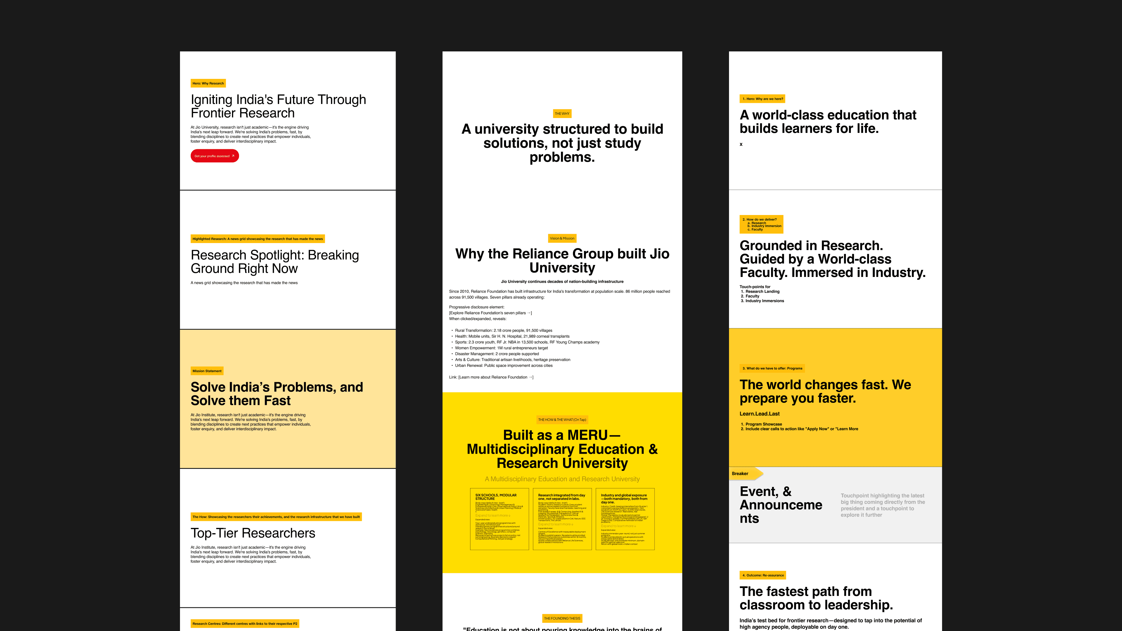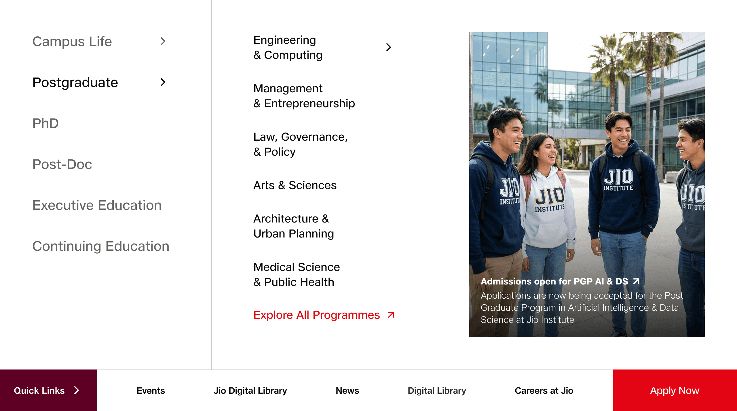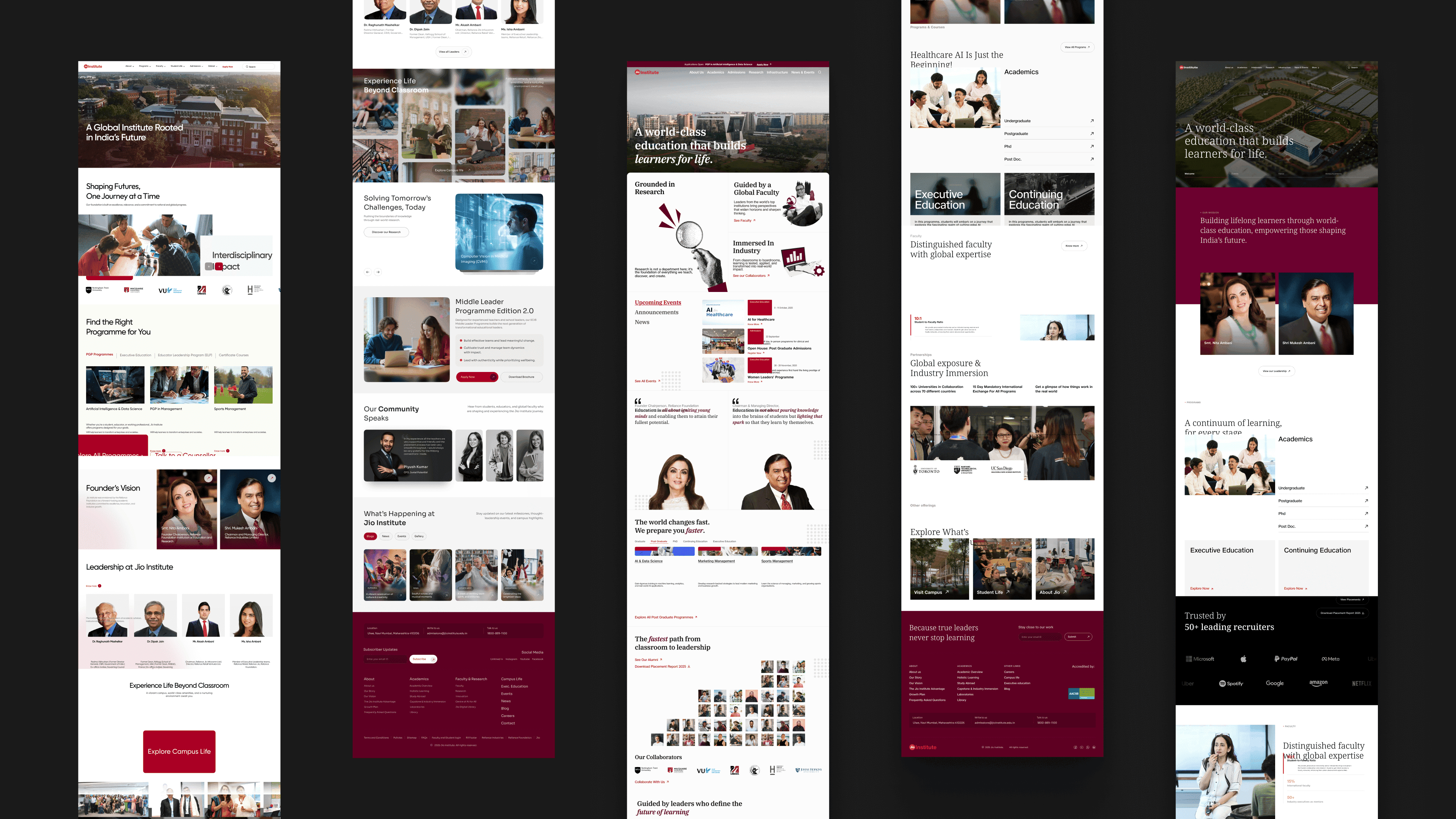 The team at Jio had seen our work on Master's Union and wanted something similar for their new University. Full website redesign: homepage, about us, programs, research, sports and athletics.