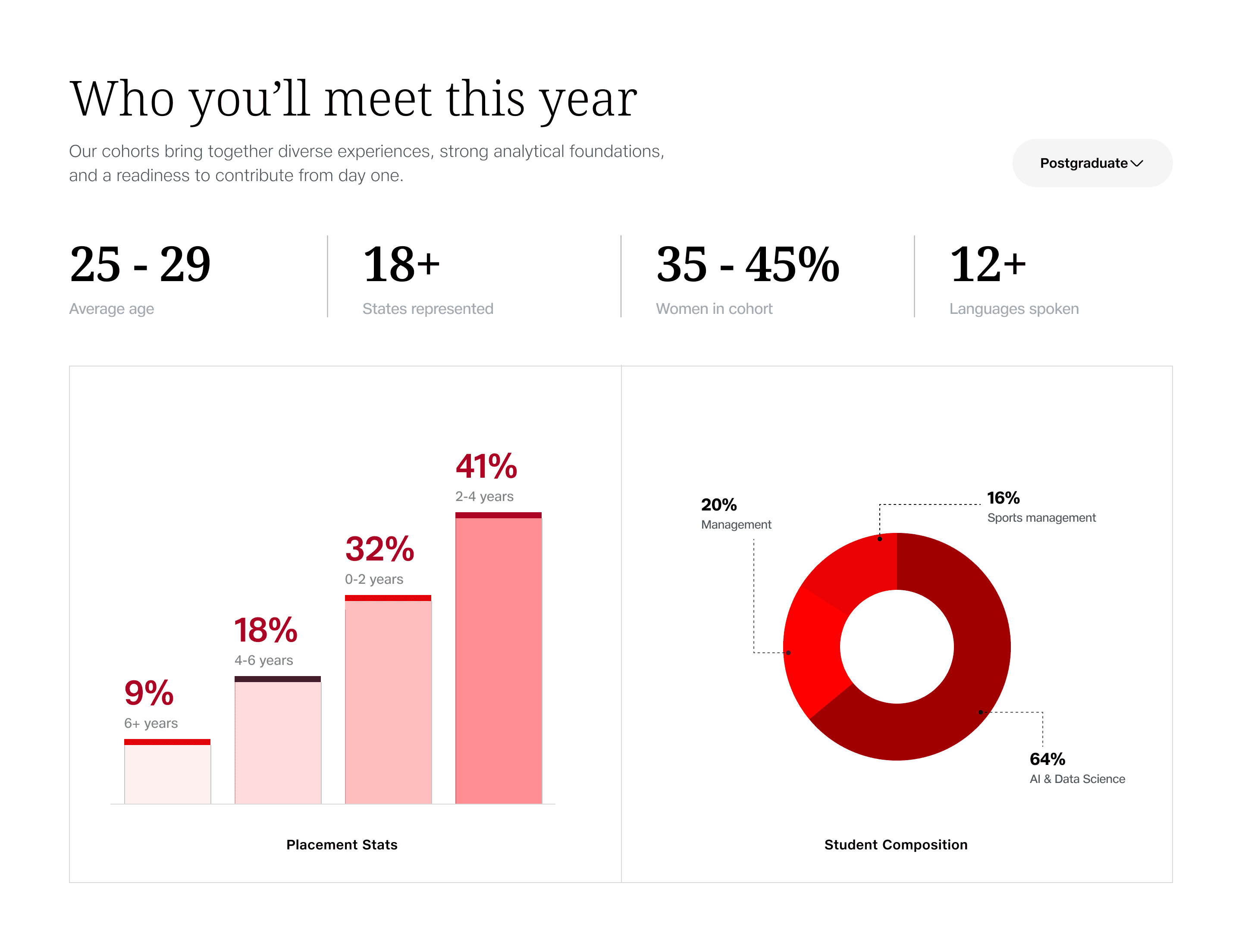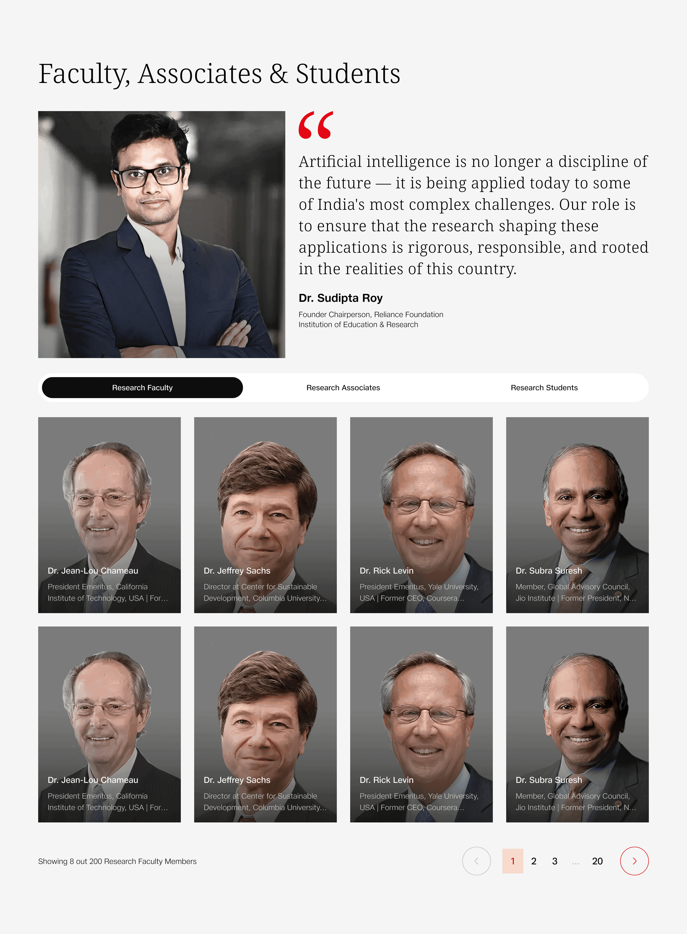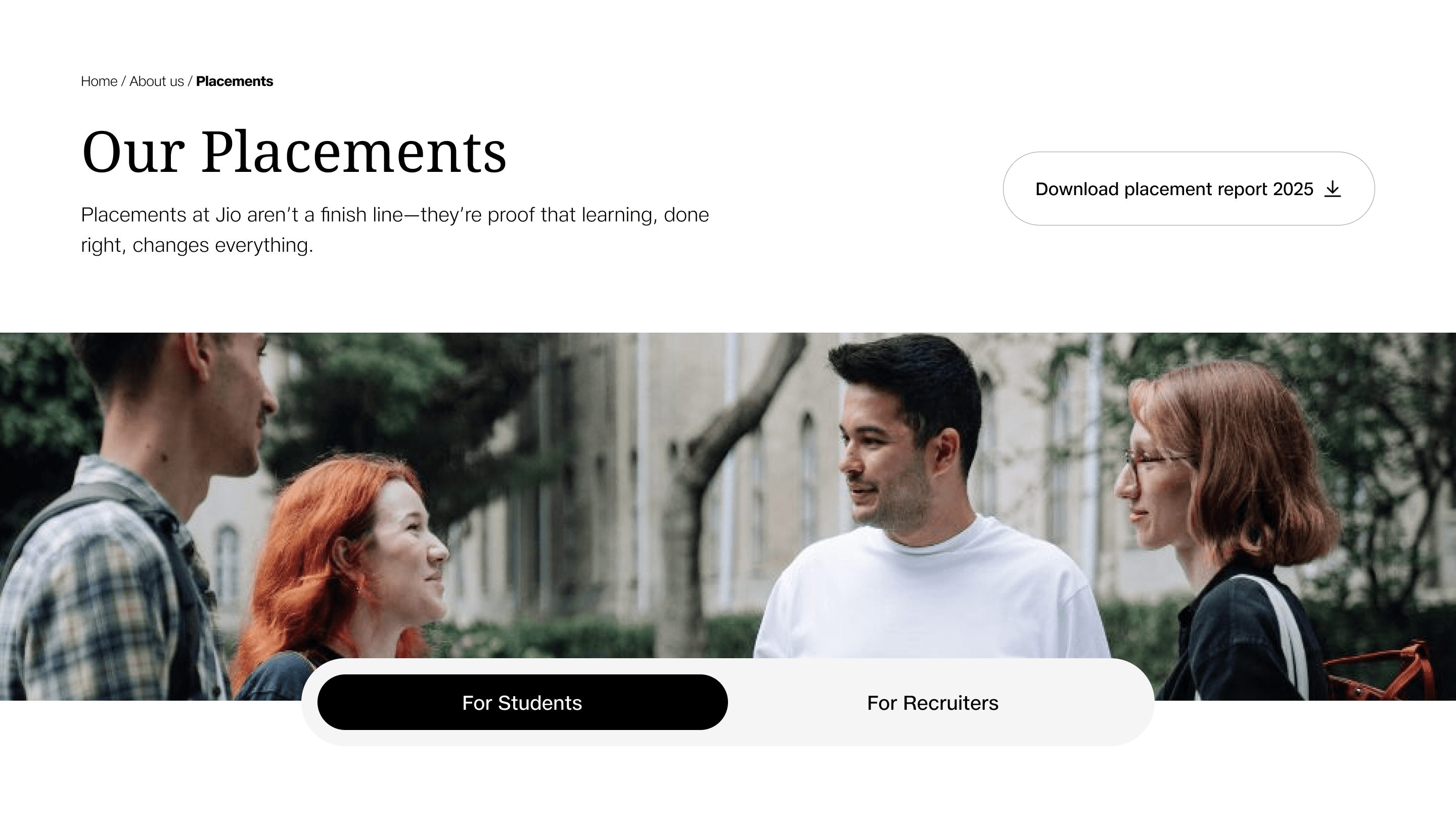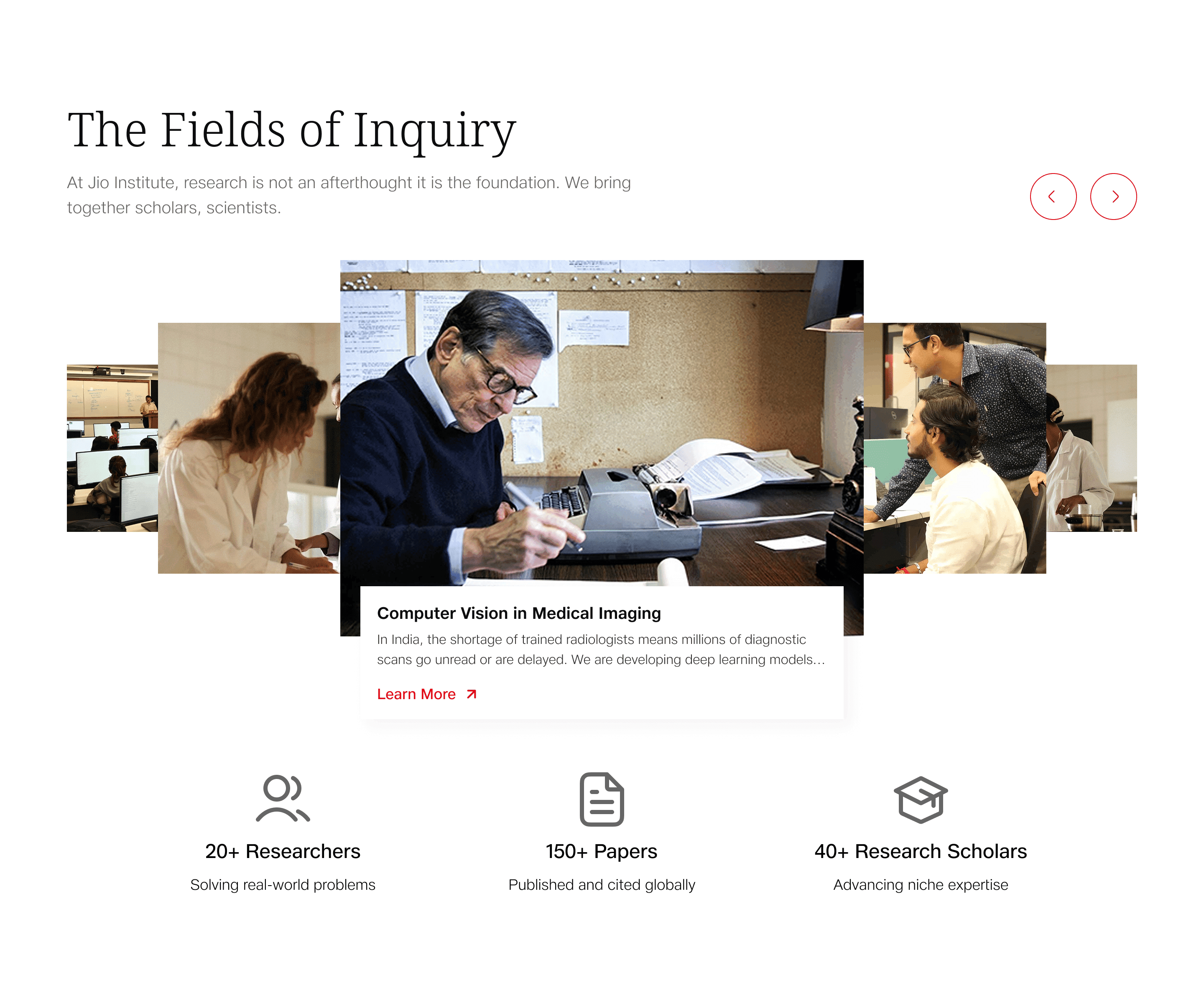 The team at Jio had seen our work on Master's Union and wanted something similar for their new University. Full website redesign: homepage, about us, programs, research, sports and athletics.